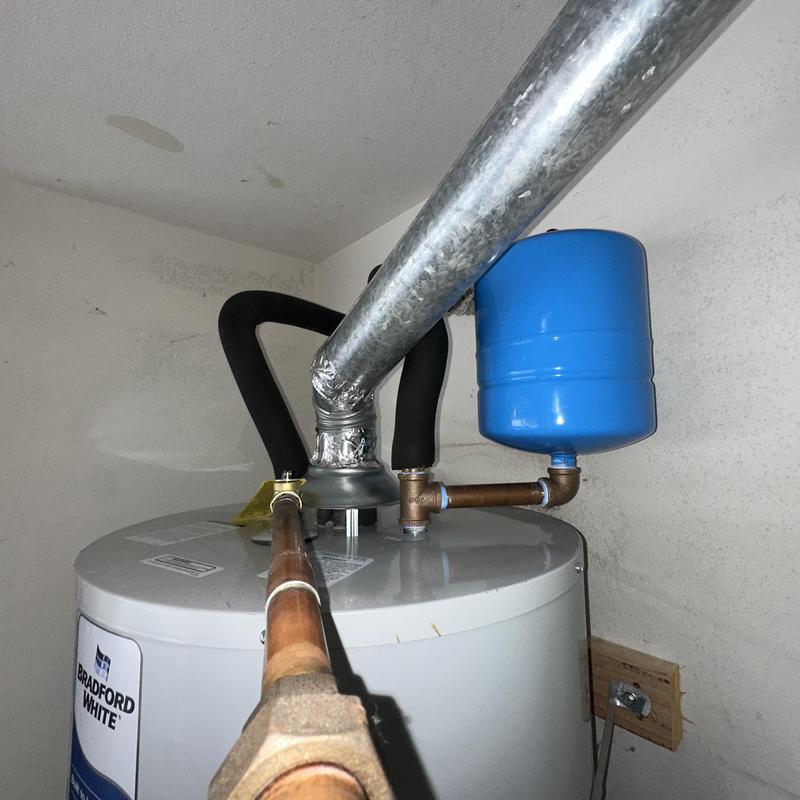 J and M Plumbers replaced an outdated 50-gallon water heater with a Bradford White tank in Pomona, CA. They also installed a 2.0-gallon Everbilt thermal expansion tank to improve system efficiency.